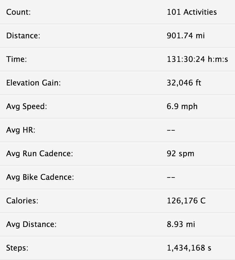 Training doesn’t lie. The training is actually something I’m really proud of. 101 runs and over 900 miles covered including the race itself. Over 130 hours of effort, focus and discipline over 18 weeks. I learned to properly incorporate speed and strength runs, tempo runs, and learned the importance of easy runs in building aerobic fitness. I went into the race with some confidence that I could run a good race, because I knew I’d put the effort in.